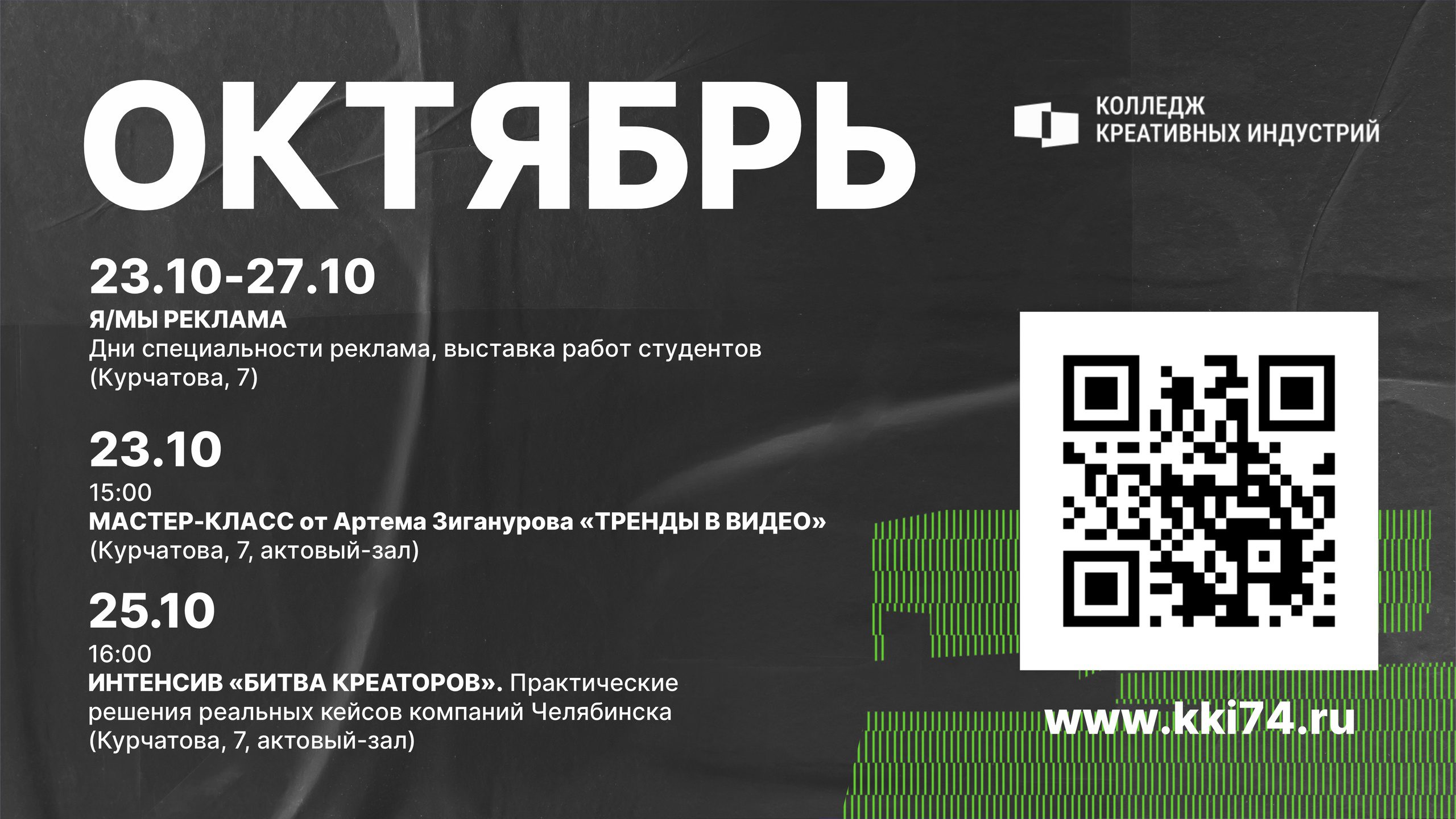 23 — 27 октября — Я/МЫ Реклама. Неделя специальности реклама в ККИ. Выставки, лекции, экскурсии. Хочешь присоединиться пиши в Телеграмм 89518017860.